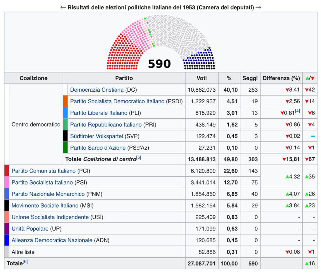 Elezioni 1953 — ai seggi si recarono il 93,81% degli italiani